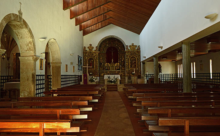 O interior antes da ultima alteração era de uma só nave, coberta por tecto de madeira, possui seis altares, o retábulo do altar-mor e os dos altares laterais ostentam talha dourada do início do século XVIII. Na capela lateral do lado da Etola, dedicada a Nossa Senhora do Rosário reconstruída em 1873, está colocado um retábulo de época posterior que enquadra telas secundárias.